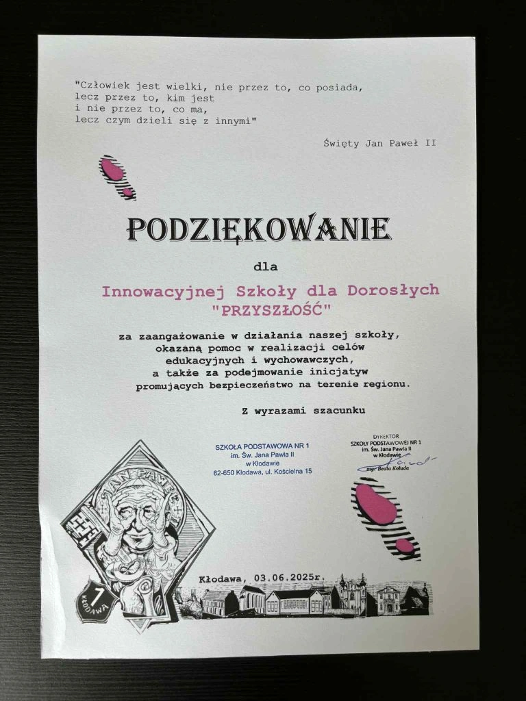 W dniu 03.06.2025r. Mieliśmy przyjemność z Panią Katarzyną Kranz-Bartkiewicz członkiem Stowarzyszenia ‘’ Dom Dziennego Pobytu i Aktywności Międzypokoleniowej -Kłodawa’’ oraz z przedstawicielkami Innowacyjnej Szkoły dla Dorosłych ’’PRZYSZŁOŚĆ’’ w Kłodawie zaprezentować i zadbać , aby młoda widownia ze Szkoły Podstawowej nr 1 im. Świętego Jana Pawła II w Kłodawie woj. wielkopolskie mogła poznać zasady jak udzielać I Pomocy Przedmedycznej Psom i Kotom.