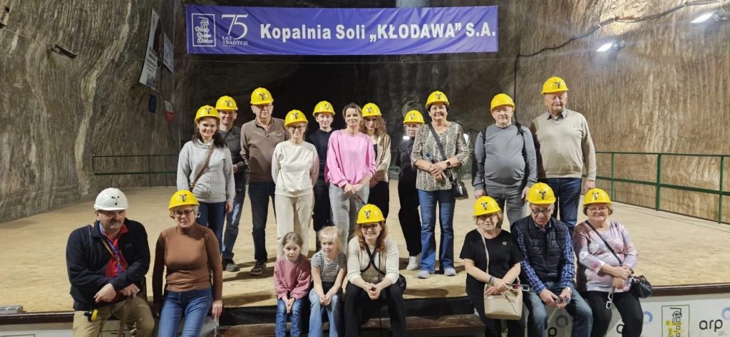 Podczas wycieczki wraz z zaproszonymi gośćmi oraz seniorami 4 marca 2026r. zwiedziliśmy Kopalnię Soli w Kłodawie, która jest jedną z największych i najstarszych kopalni soli kamiennej w Polsce. Kopalnia znana z wydobycia soli białej oraz rzadkiej soli różowej.Zwiedzanie rozpoczęło się od zjazdu windą górniczą na głębokość około 600 metrów pod ziemię. Następnie przewodnik opowiedział nam o historii kopalni, pracy górników oraz sposobach wydobywania soli. Mogliśmy zobaczyć podziemne korytarze, maszyny górnicze oraz ogromne komory solne.Dowiedzieliśmy się również, że kopalnia działa od 1949 roku i nadal prowadzi wydobycie soli, która jest wykorzystywana w przemyśle i w gospodarstwach domowych. Zwiedzanie było bardzo ciekawe i pozwoliło nam lepiej poznać trudną pracę górników oraz znaczenie soli w gospodarce.